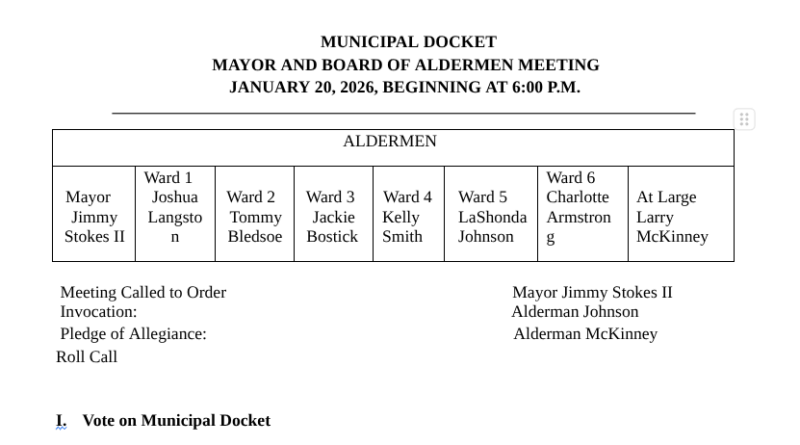 - Olive Branch Board of Aldermen, Tuesday, Jan. 6, 6 p.m.