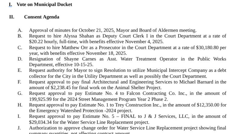- Olive Branch Board of Aldermen, Tuesday, Nov. 4, 6 p.m.