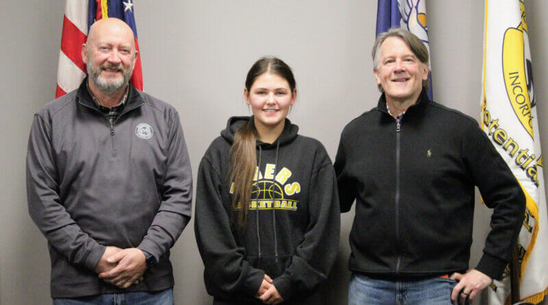 Photo: Hernando Mayor Chip Johnson, Hernando High School senior Ellie Grehan, and Mayor’s Youth Council Director Scott Smith. (Bob Bakken/desotocountynews.com)
