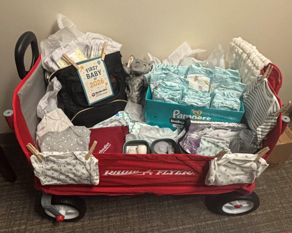 To commemorate the occasion, hospital staff presented the Anderson family with a celebratory wagon. The gift was stocked with newborn essentials—including diapers, blankets, and clothing—to help Aria and her mother during their first few days at home.