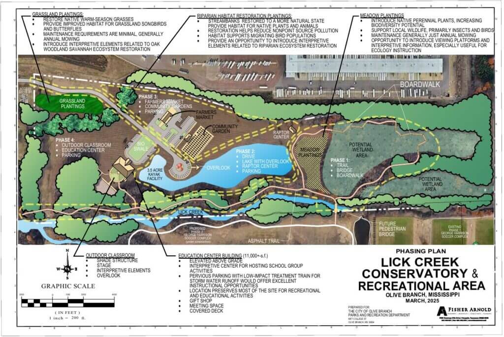 OLIVE BRANCH, Miss. — The City of Olive Branch has been awarded $2.3 million from the Mississippi Outdoor Stewardship Trust Fund (MOSTF) to develop the new Lick Creek Conservatory and Recreational Area, a major addition to the city’s expanding outdoor recreation network.