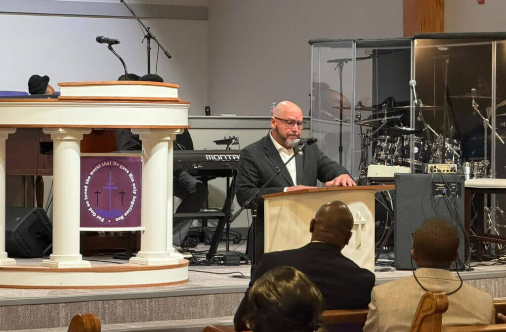 Olive Branch Mayor Ken Adams, Alderman Don Gammage, and members of the Olive Branch Police Department attended a Martin Luther King Jr. program at St. Paul Missionary Baptist Church.