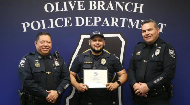 Olive Branch Mayor Ken Adams, Police Chief Carlos Garcia and the Olive Branch Police Department congratulated Sgt. Juan Euceda on 10 years of service to the department and the city, the department said.