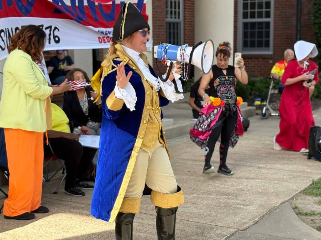 The rally concluded with a dramatic reading by members of Indivisible DeSoto MS from The Handmaid’s Tale by Margaret Atwood, symbolising vigilance against the erosion of democratic freedoms. The peaceful event ended with applause and renewed calls for civic engagement and voter participation as attendees waved flags and chanted, “No kings!”