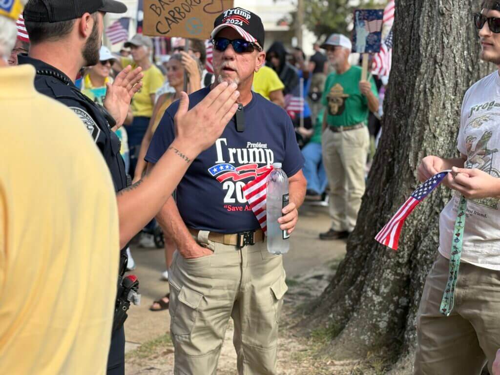 Hernando police had a visible presence on the Courthouse Square during the rally and the only moment during the protest rally came when a Trump supporter tried to start an argument with protesters. Police quickly asked him to leave the area and go across the street.