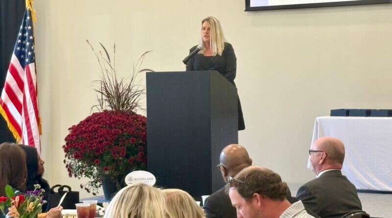 Photo: Southaven Chamber of Commerce President/CEO Debbie King addresses the Chamber’s Quarterly Luncheon/Awards Presentation. (Bob Bakken/desotocountynews.com)