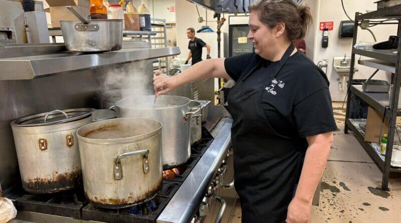 Photo: SweetPea’s Table owner Amy Hughes helps prepare food in her restaurant’s kitchen Tuesday morning. (Bob Bakken/desotocountynews.com)