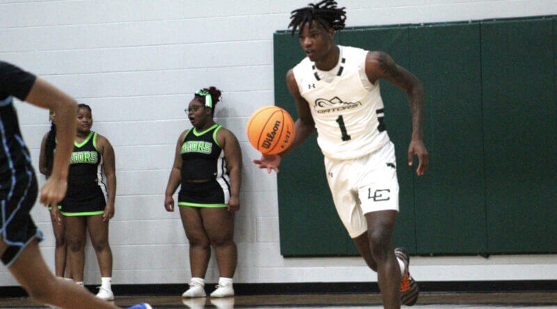 Photo: Damar Bryant of Lake Cormorant is shown advancing the basketball during Tuesday’s 73-47 boys’ victory over Saltillo. Bryant led all scorers with 23 points. (Bob Bakken/DeSotocountynews.com)