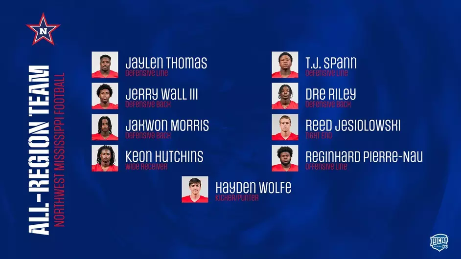 Offensively, Northwest secured three All-Region spots: offensive lineman Reginhard Pierre-Nau, tight end Reed Jesiolowski, and wide receiver Keon Hutchins. Hutchins had a breakout season with 635 yards and six touchdowns on 34 receptions, including a 219-yard, three-touchdown performance against Southwest Mississippi. Jesiolowski added 348 yards and four touchdowns.