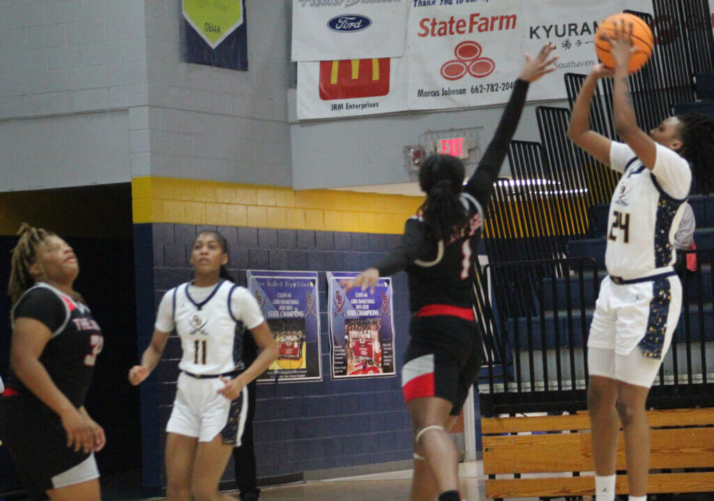 The girls matchup was tight early, with Holmes County Central leading 12-10 after the first quarter and the teams tied at 18 at halftime. Olive Branch broke the game open with a 12-0 run to start the third quarter, building a 30-18 lead.