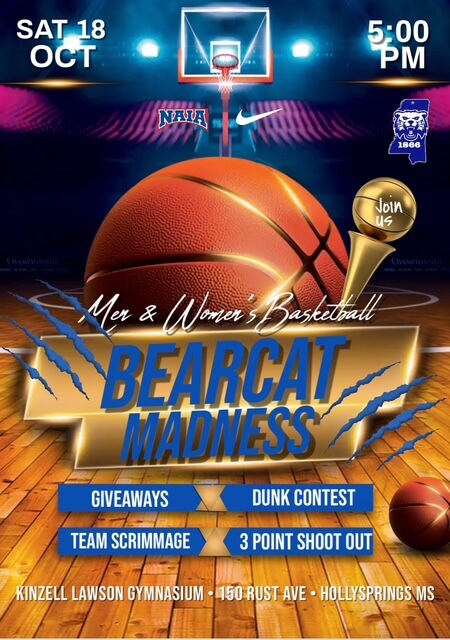 HOLLY SPRINGS, Miss. (Oct. 17, 2025) — Rust College Athletics is preparing to electrify the Holly Springs community with its inaugural “Bearcat Madness” event on Saturday, Oct. 18. The celebration is designed to officially launch the 2025-26 basketball season and rally students, alumni, and local residents around the college’s Men’s and Women’s Basketball Teams.