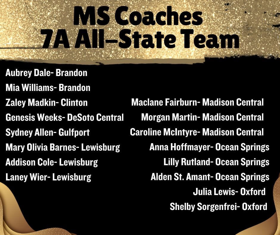 The 7A all-state team includes Genesis Weeks of DeSoto Central and three players from Lewisburg: Mary Olivia Barnes, Addison Cole, and Laney Wier.