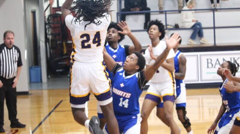 Photo: DeSoto Central’s AJ Hussey (24) battles inside in the Jaguars’ contest against Greenville Christian at Magnolia Heights. (Bob Bakken/desotocountynews.com)