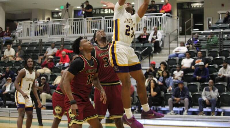 Photo: DeSoto Central’s Caleb Smith (23) goes up against a pair of Maverick defenders in Thursday’s 7A quarterfinal contest at Mississippi Valley State University. (Bob Bakken/desotocountynews.com)