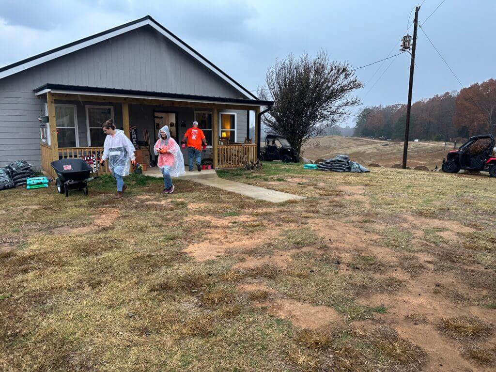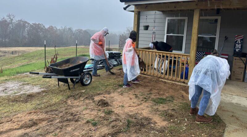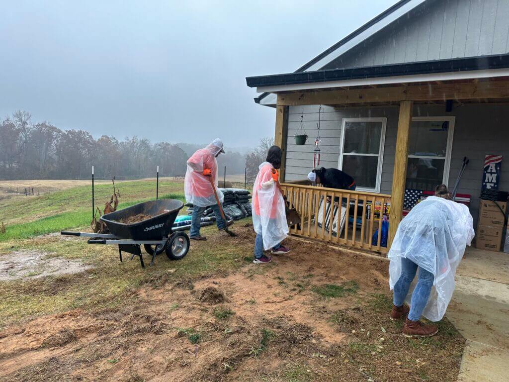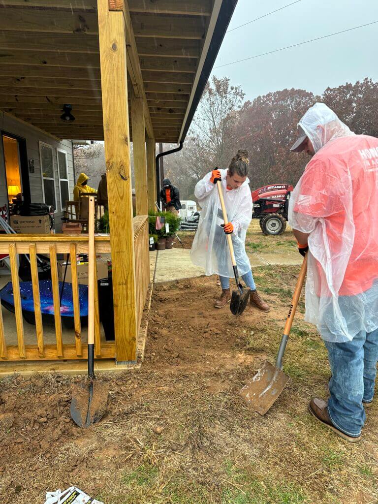 Rain shortened their time at the home on Thursday, but volunteers vowed to return and finish the work.