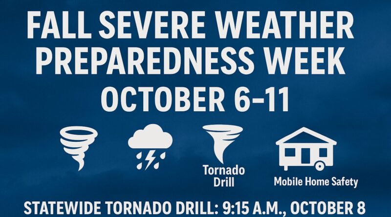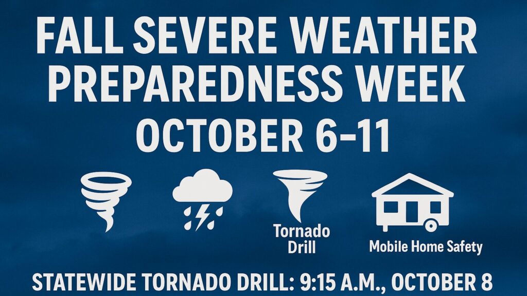 - Wednesday, Oct. 8: Tornado Safety (including a statewide drill at 9:15 a.m.)