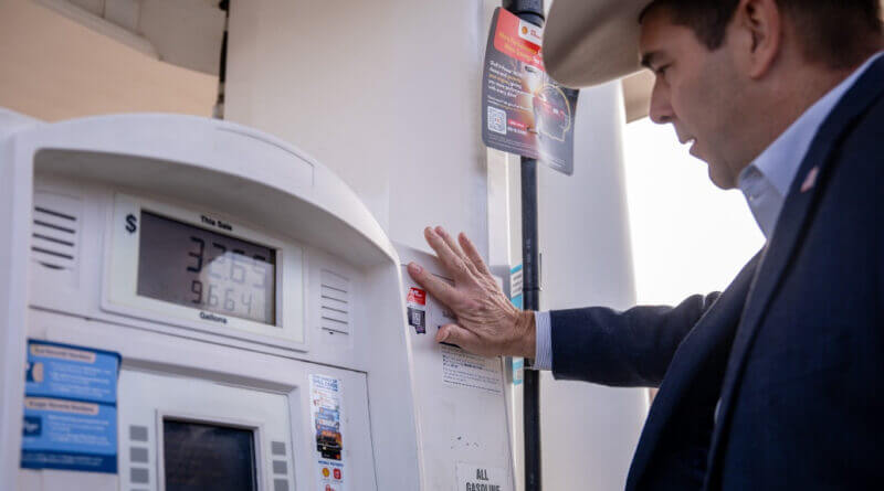 Photo: Ag Commissioner Andy Gipson places an official 2026 MDAC Regulatory Services sticker on a fuel pump after passing inspection at the Sprint Mart Fuel Station in Jackson. (Courtesy photo)