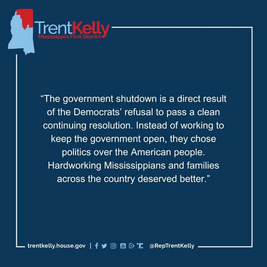 Meanwhile, Republican First District Congressman Trent Kelly Wednesday issued the following statement:
