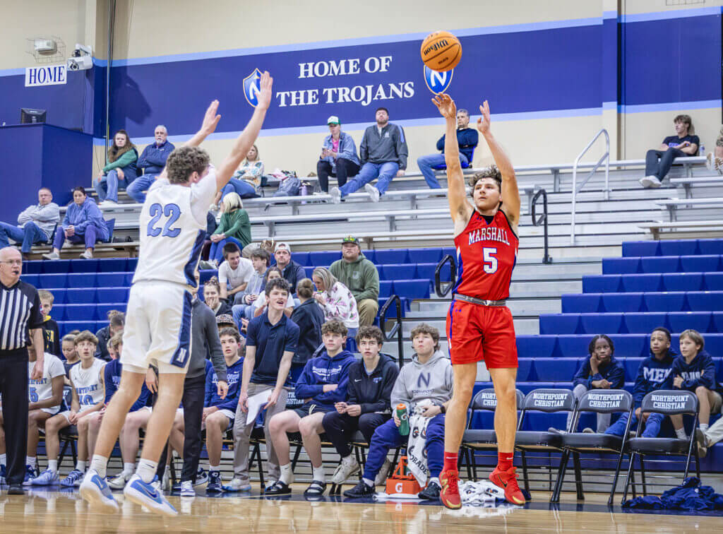 SOUTHAVEN – In a contest that saw momentum swing early, the Marshall Academy Patriots pulled away in the second half to secure a convincing 63-49 victory over the Northpoint Christian Trojans.
